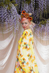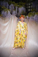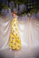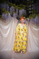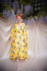 Abstract Patterned abstract kaftan in faux silk neon yellows