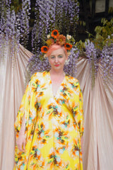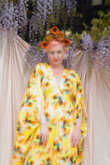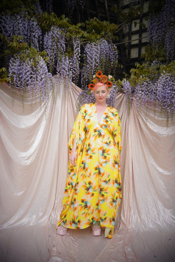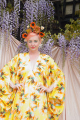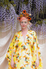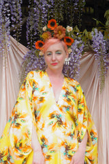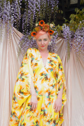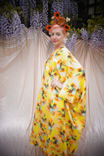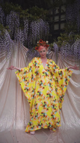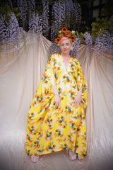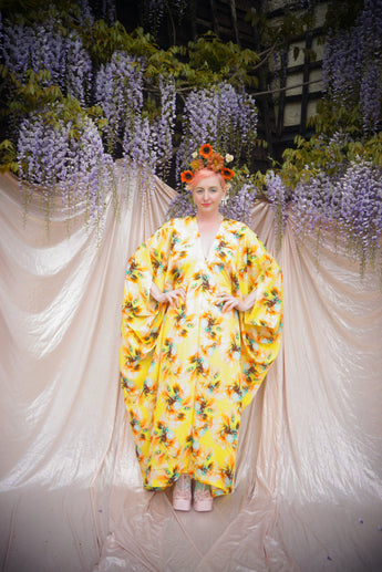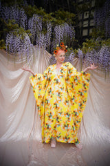 Abstract Patterned abstract kaftan in neon yellows in s faux silk super soft fabric