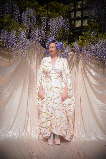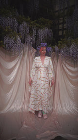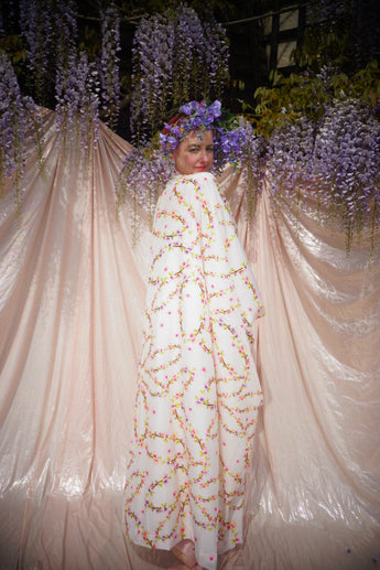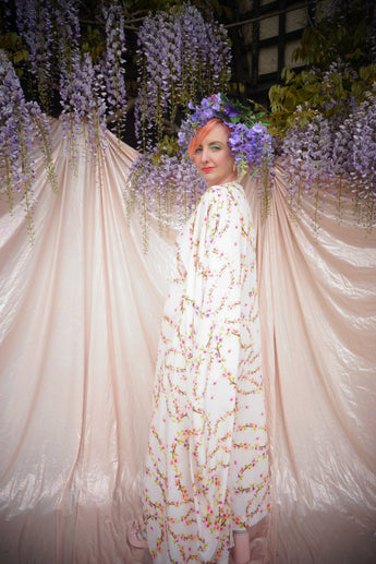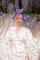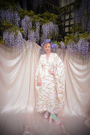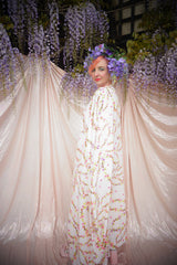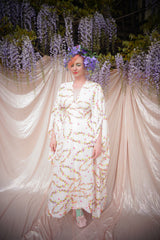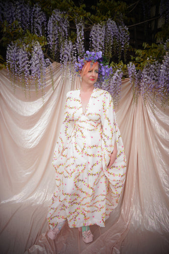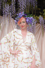 Floral Vines and Blossom Lightweight Kaftan in cream and pink and green