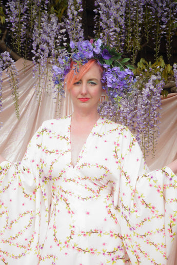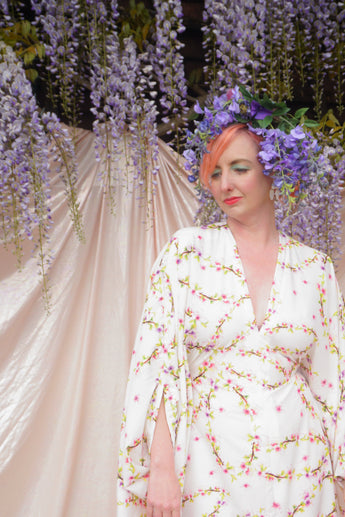 Floral Vines and Blossom Lightweight Kaftan in pastel pinks and blue - made from a soft stretch crepe