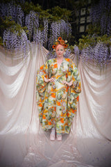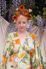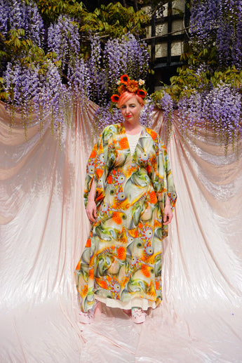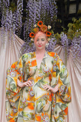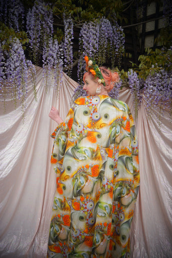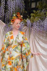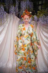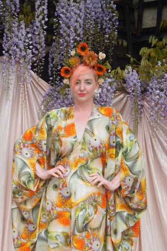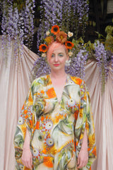 Psychedelic Patterned abstract Cotton kaftan in Olive and orange