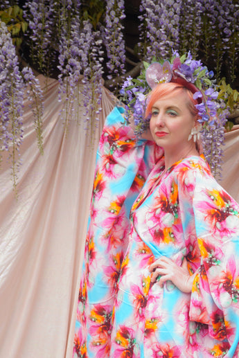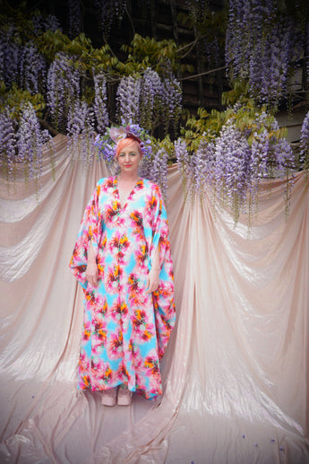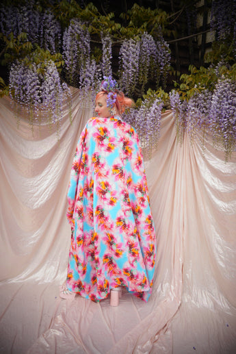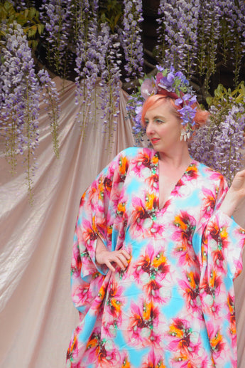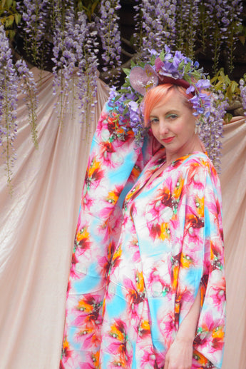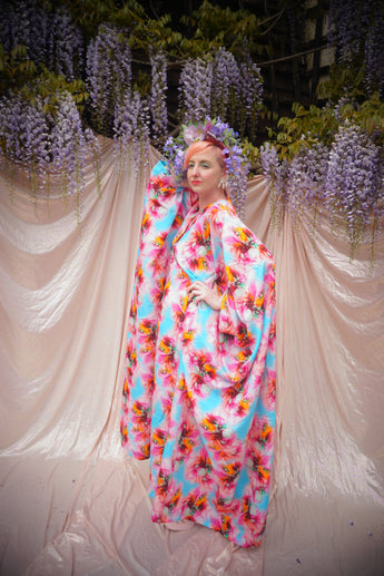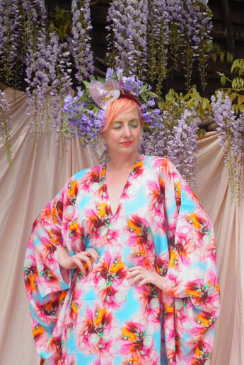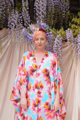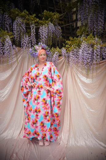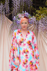 Psychedelic Patterned abstract faux silk kaftan in Pink and Blue