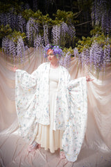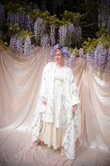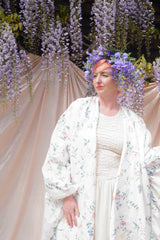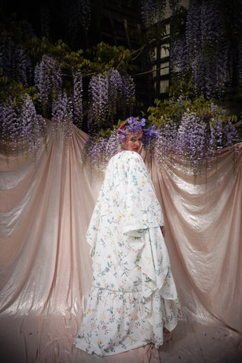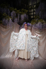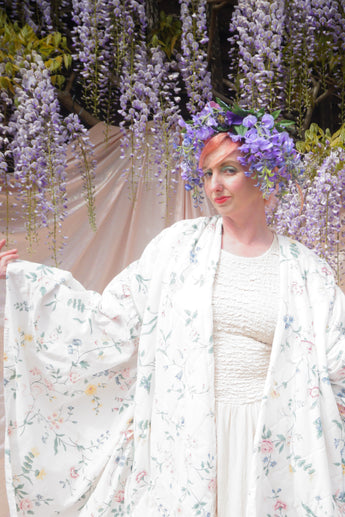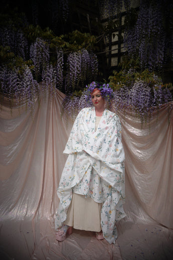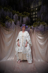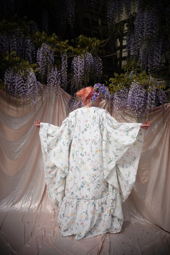 Our kaftan dresses are uniquely fitted with hidden velvet ribbons on the inside meaning you can wear them two ways - 1) Free, loose and baggy, and 2) with the ribbons tied at the waist to pull the dress in and frame your figure.