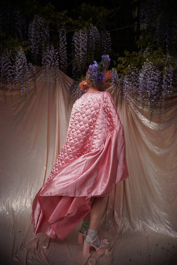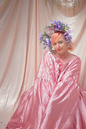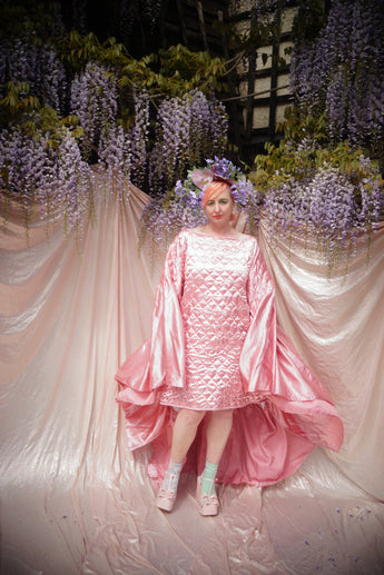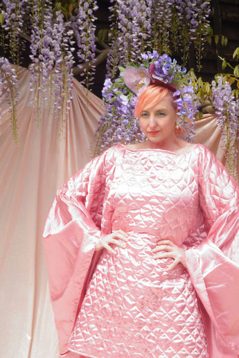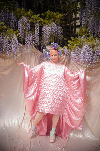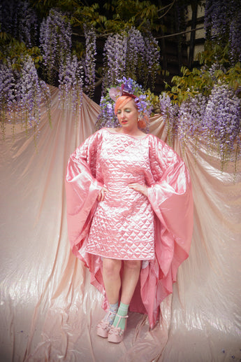 Reworked 60s sikly satin bedsheet Dress in Dusky Pink