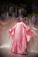 Our kaftan dresses are uniquely fitted with hidden velvet ribbons on the inside meaning you can wear them two ways - 1) Free, loose and baggy, and 2) with the ribbons tied at the waist to pull the dress in and frame your figure.