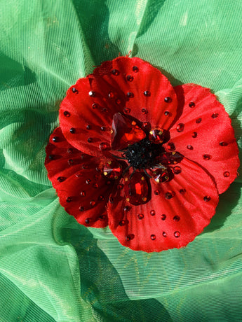 Beautiful, Unique jewelled artificial flower Poppies handmade in the UK with a portion of proceeds going to the Veteran support Charity - The Poppy Factory