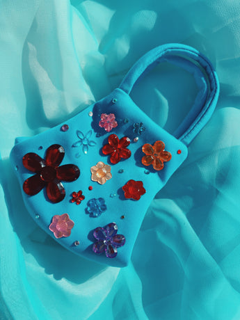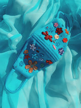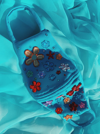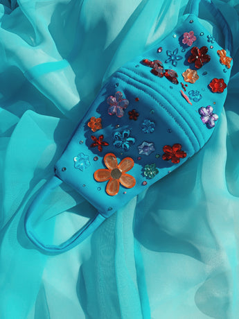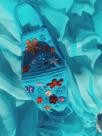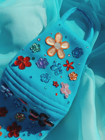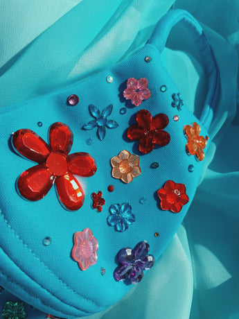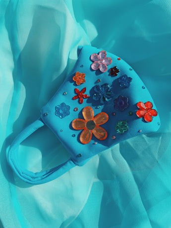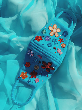 blue flower Bejewelled Gem Fashion Neoprene Face mask