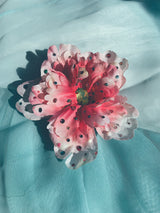 Rainbow Rhinestones bejewelled pink peony brooch and hair clip