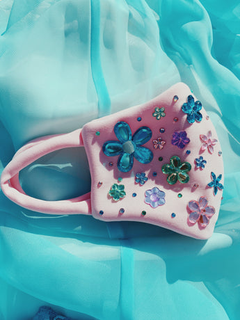 Pink flower Bejewelled Gem Fashion Neoprene Face mask