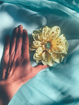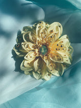 Yellow and Gold chrysanthemum Bejewelled Brooch and Hair Clip