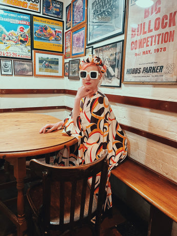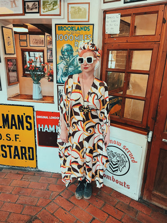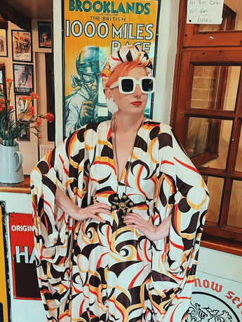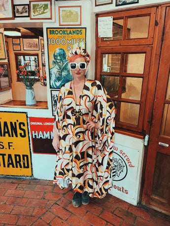 Our kaftan dresses are uniquely fitted with hidden velvet ribbons on the inside meaning you can wear them two ways - 1) Free, loose and baggy, and 2) with the ribbons tied at the waist to pull the dress in and frame your figure.