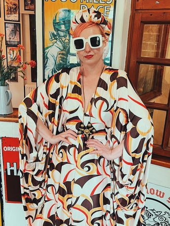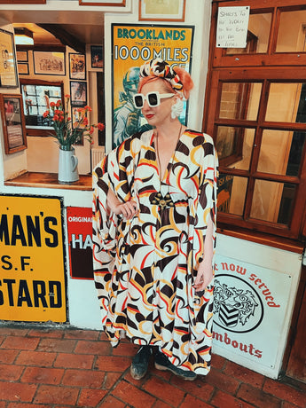 60s slinky 60s kaftan Miami Beach cocktail Print Kaftan Gown