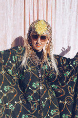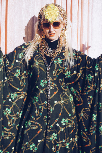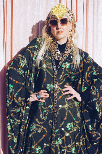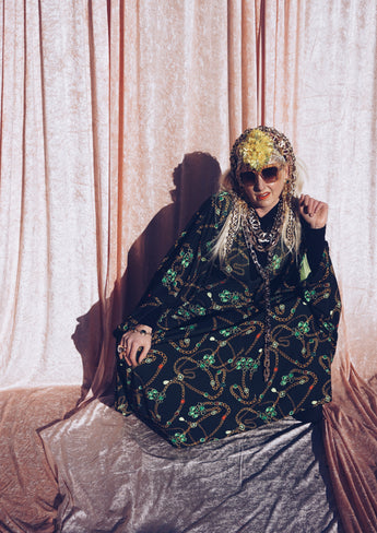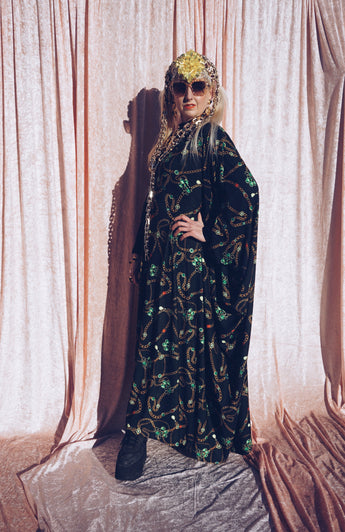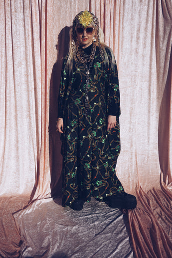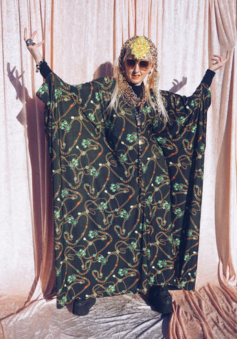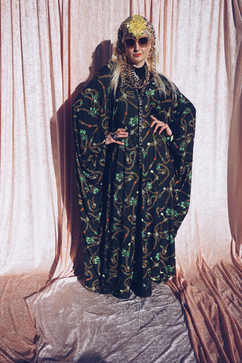 Luxury Kaftan Gown in a soft jersey fabric in a jewels and chains print.