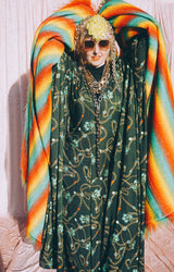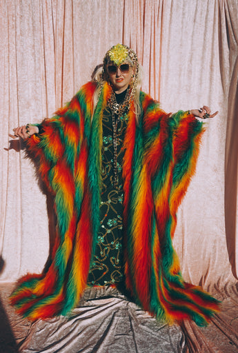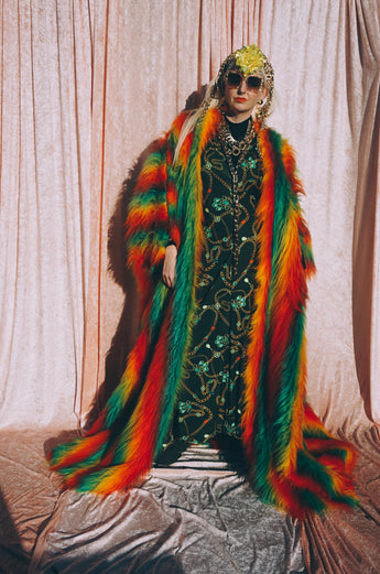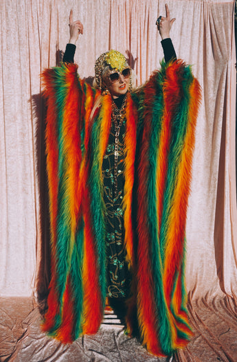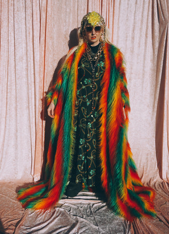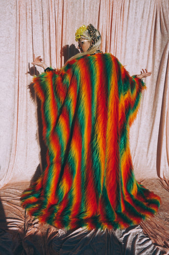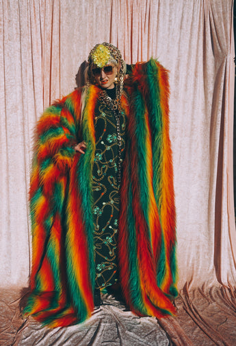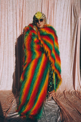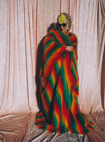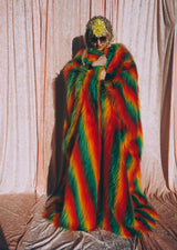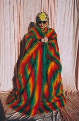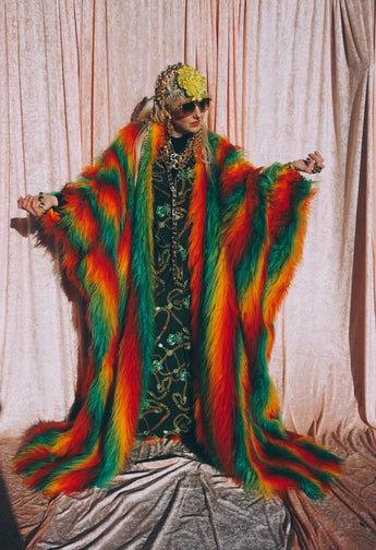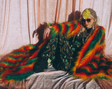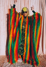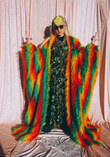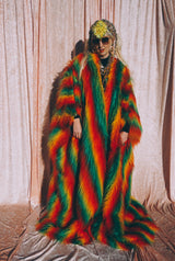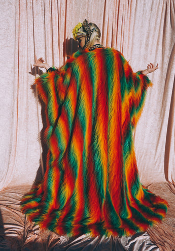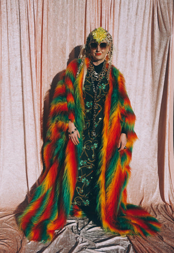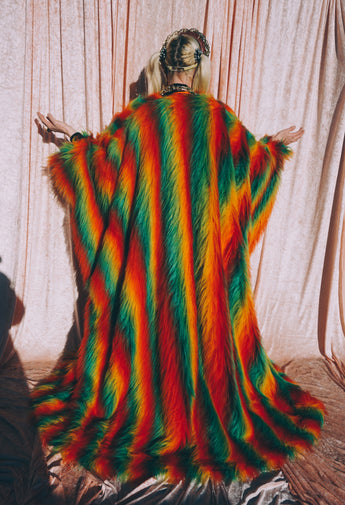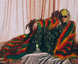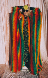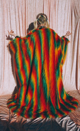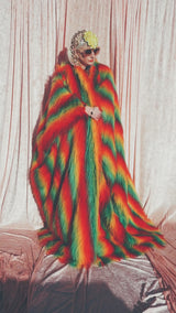 INCREDIBLE MONSTA rainbow Faux fur robe in green, yellow orange and red. Super long haired and lux!