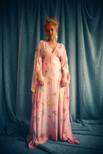 Our kaftan dresses are uniquely fitted with hidden velvet ribbons on the inside meaning YOU decide how you'd like to wear them. Choose from -