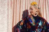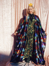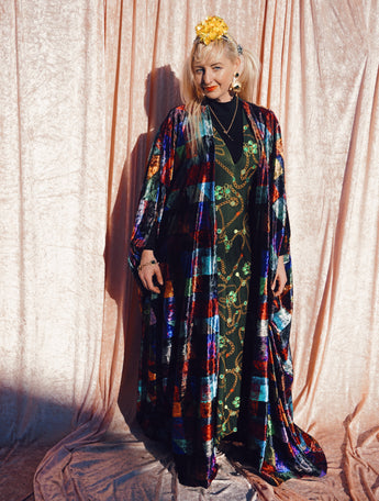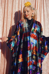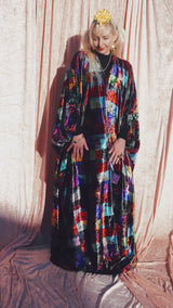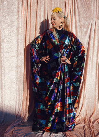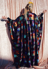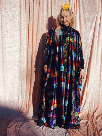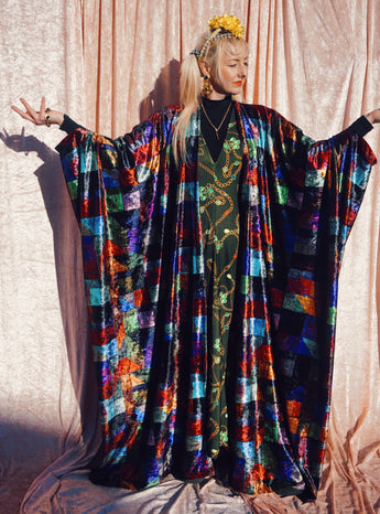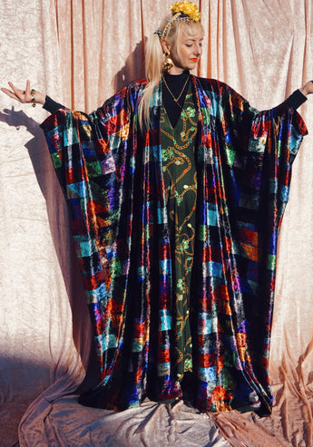 Patchwork Print Art Teacher Velvet Kimono Open Robe / Kaftan Dress
