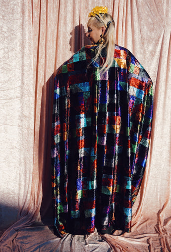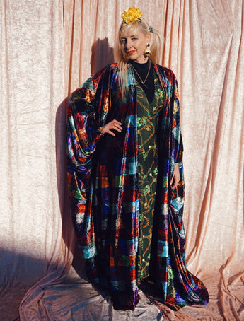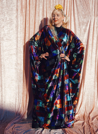 Luxury stretch velvet patchwork Kimono robe. Super soft, unlined - can be shortened. No fastenings of fixtures can be made as a kaftan.
