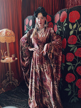 Opulent Velvet Tiger Moth V Neck Kaftan Gown, Freesize