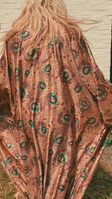 Gold Floral V-Neck Kaftan Gown in a soft, lightweight, stretchy fabric.