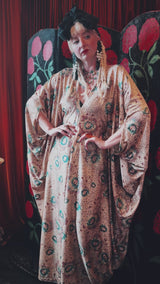 Golden Rose slinky v-neck kaftan gown. Lightweight and slinky fabric.