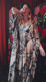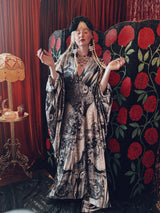 Opulent Velvet Celestial Baroque V Neck Kaftan Gown, Freesize