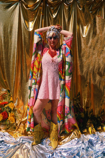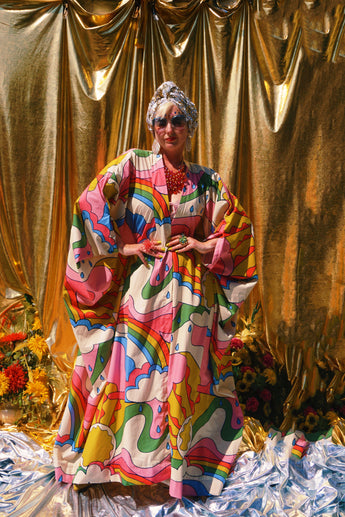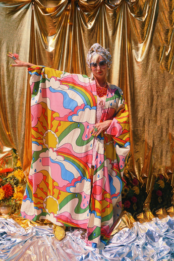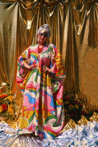 Here Comes the Sun Psychedelic Cotton Kaftan. The most wonderful print on Soft, and breathable Cotton Poplin.