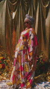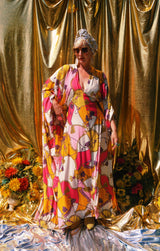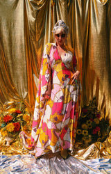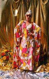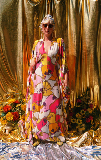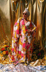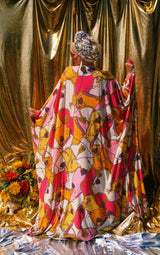 Slinky Chain Reaction Print V Neck Kaftan Gown, Freesize