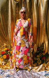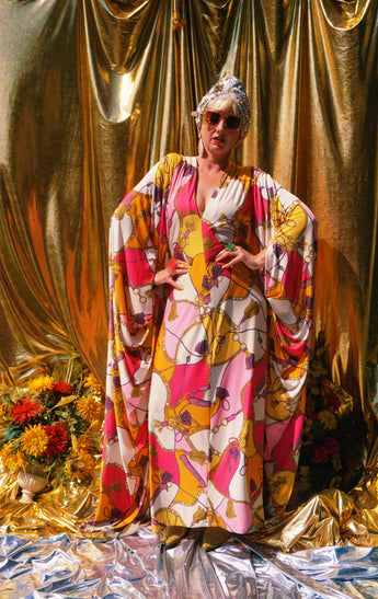 Chain Reaction Slinky V-Neck Kaftan Gown in a spandex stretchy slinky fabric