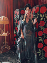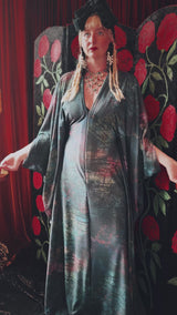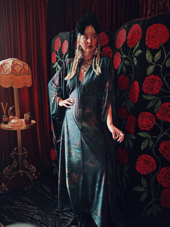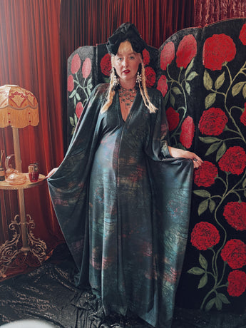 Forest Deep slinky v-neck kaftan gown in a crepe medium weight fabric