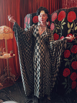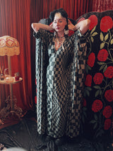 Slinky Checkerboard Maze V Neck Kaftan Gown, Freesize