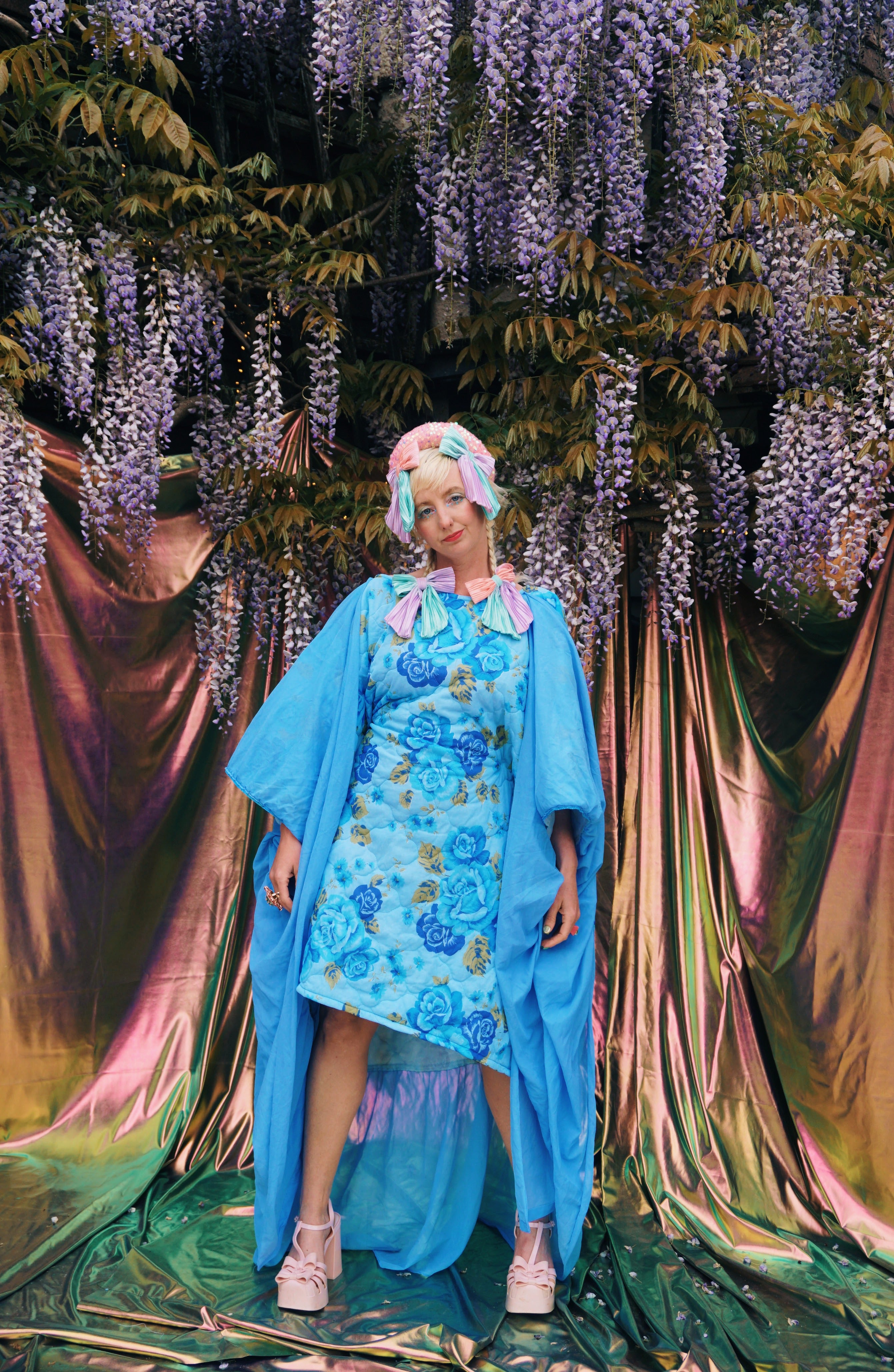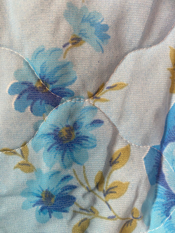 Blue Floral Reworked Mini Dress with dipped hem. This stunning piece has been lovingly upcycled from 1960s nylon bedding.