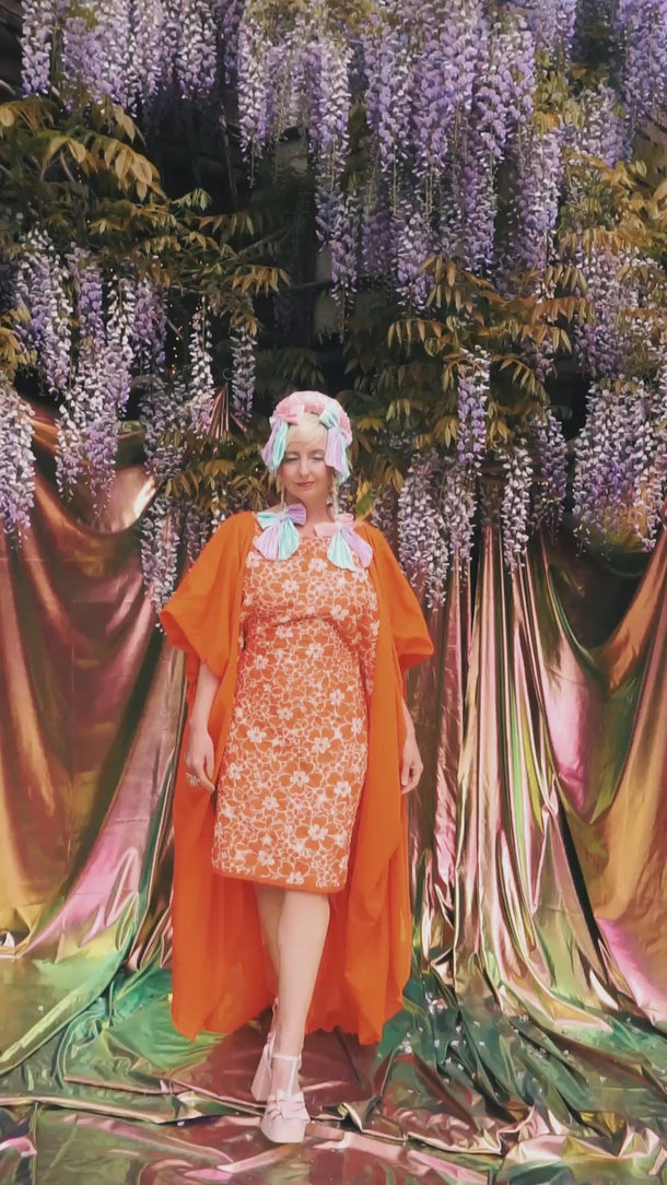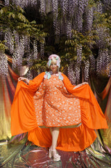 Tangerine Dream Reworked Mini Dress with dipped hem. This stunning piece has been lovingly upcycled from 1960s nylon bedding.