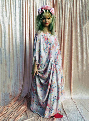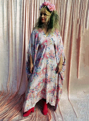 Sweet Florals Printed Springtime Kaftan Dress in Pink
