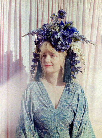 Treat yourself to an exquisite floral crown fit for a (queen)! Our Large Blue and Green Floral Headdress is just the thing to add that extra oomph to any look. With its bright and cheerful hydrangeas and whimsical tassels, you'll be sure to make heads turn. So go ahead and give yourself a crowning glory!