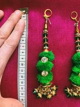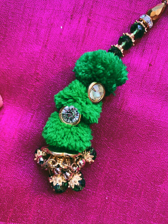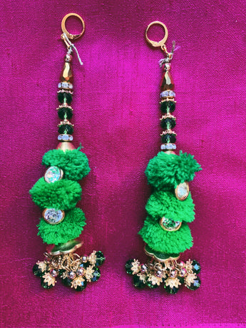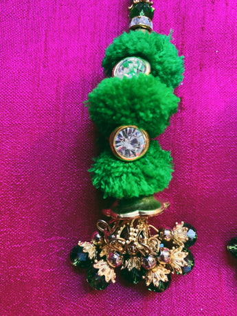 Seriously statement Green and gold bejewelled tassel Earrings. Only one pair of these! 16 cm in length (Including earring hoop). These are quite heavy so do be careful when wearing - clip on option also available - please request this in the comments on checkout or get in touch via email on - fumbalinas@gmail.com