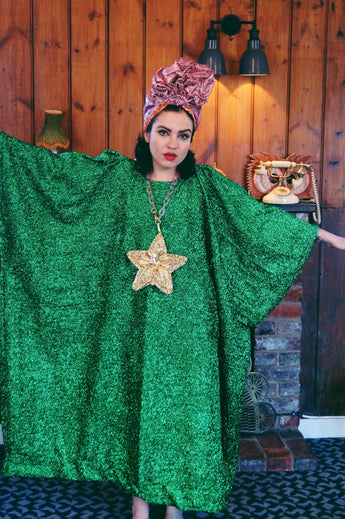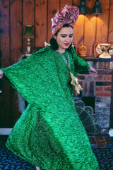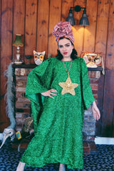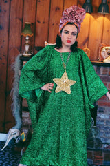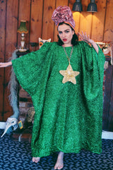 Metallic Tinsel Knit Kaftan Dress - GREEN *4 WEEK DELIVERY