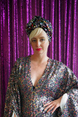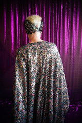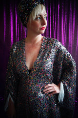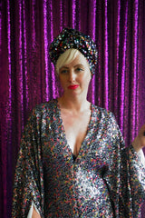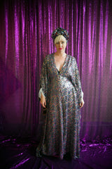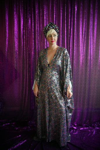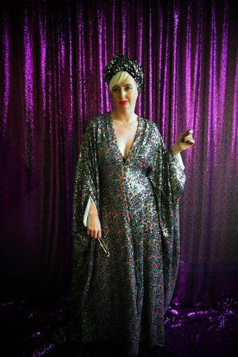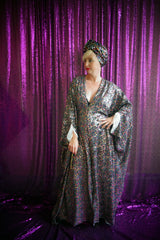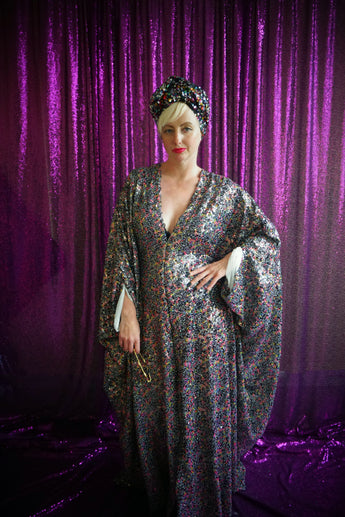 Our kaftan dresses are uniquely fitted with hidden velvet ribbons on the inside meaning you can wear them two ways - 1) Free, loose and baggy, and 2) with the ribbons tied at the waist to pull the dress in and frame your figure.
