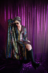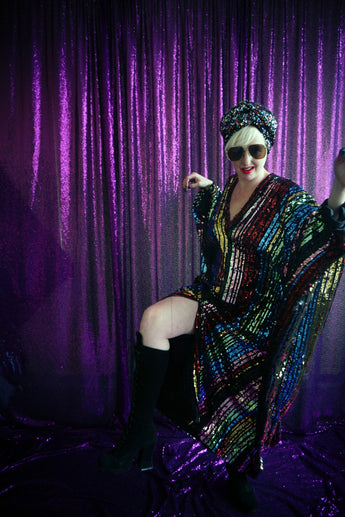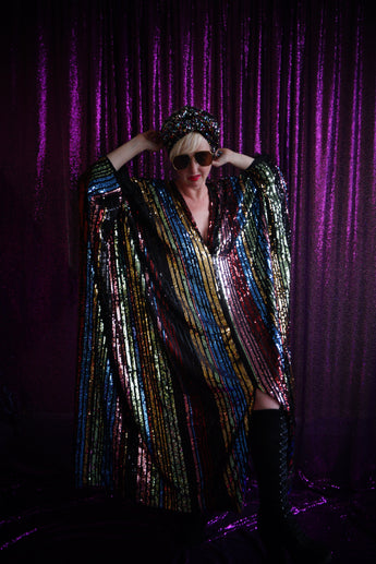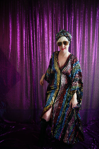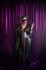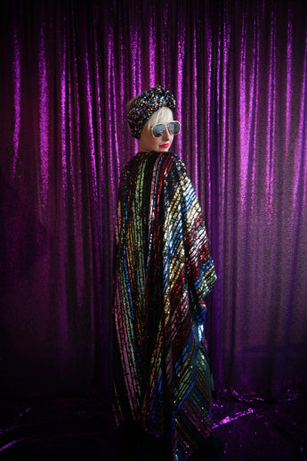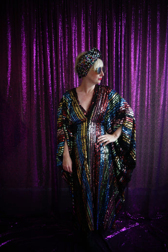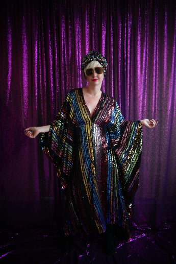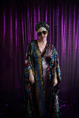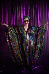Fizzy Rainbow Striped Sequin Kaftan Gown, Freesize