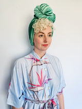 You know how much we love a kaftan dress in the attic, and this one is no exception. Free fitting and can be work loose and baggy or comes with belt and loop holes to tie in the centre. Buttons up down the neck also. There are some small stains and damage to the fabric in parts, reflected in the price.