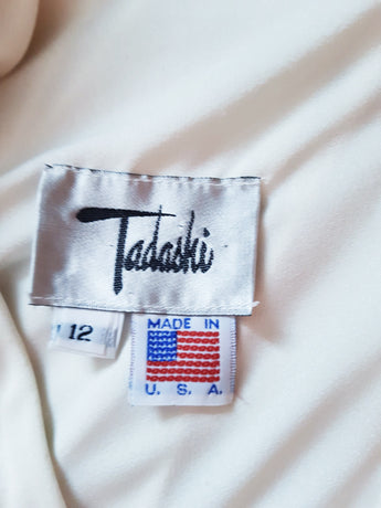 Designer Tadashi Cream Ruffle Diamonte Evening Dress