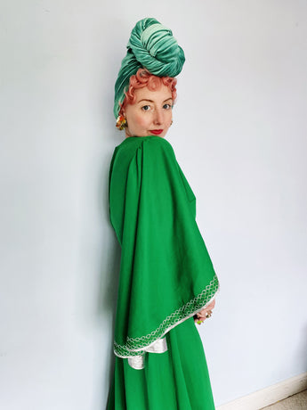 Love witch Green and Silver Angel Sleeve 70s maxi dress *Personal Collection*