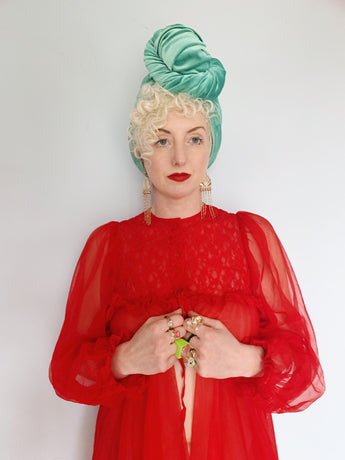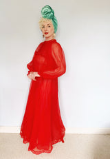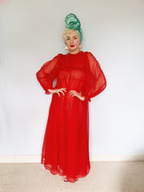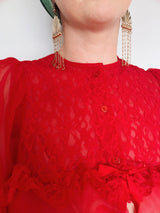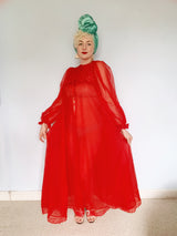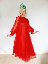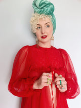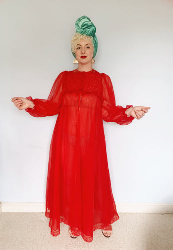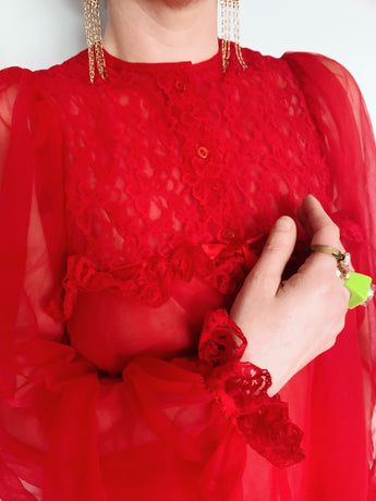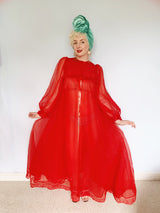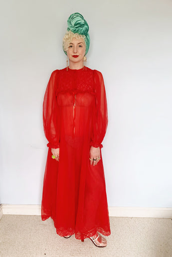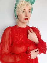 Richards Shops - Red Sheer Nylon Frill Dress / bed jacket