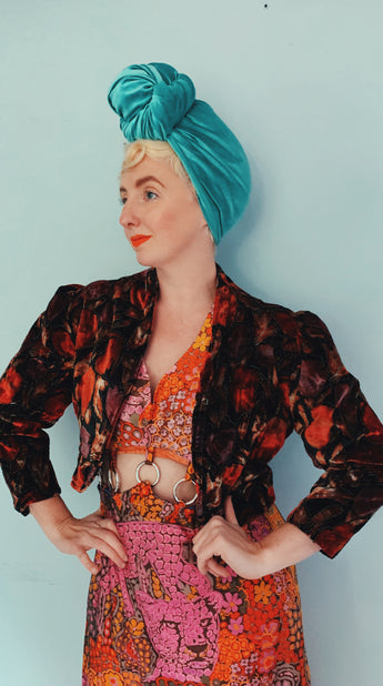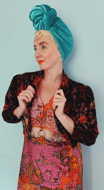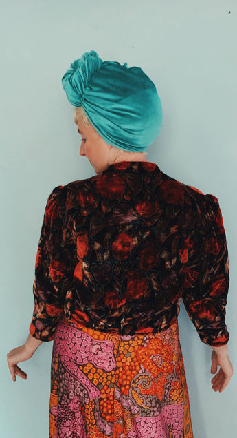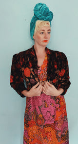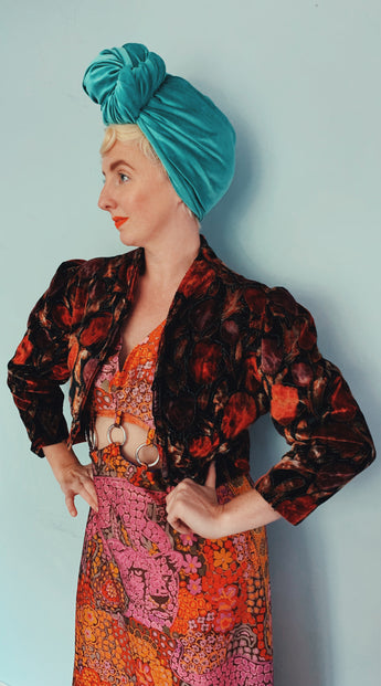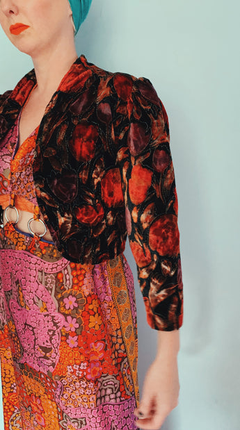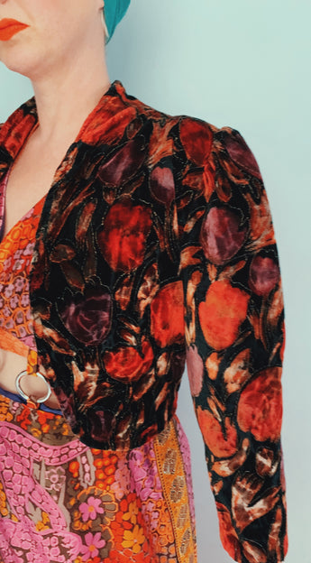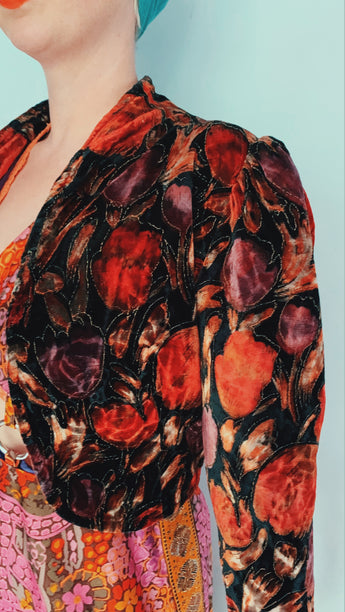 Velvet 80s bolero - golds, reds burgundy Size 10-12