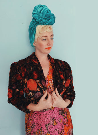 velvet bloero with glitzy thread and pattern. Slightly puffed shoulders - 80s style.