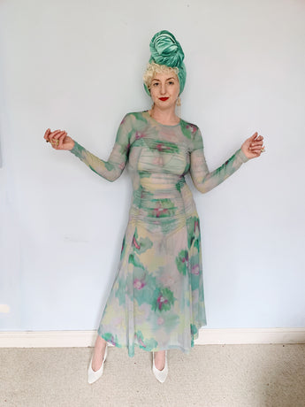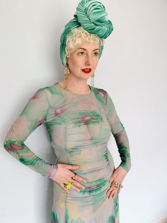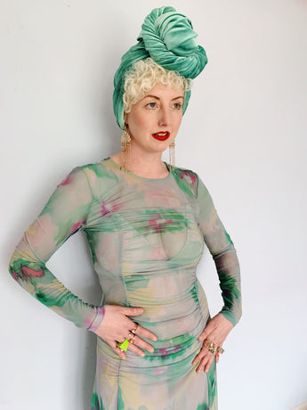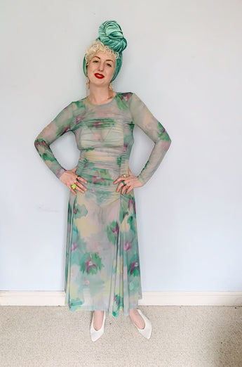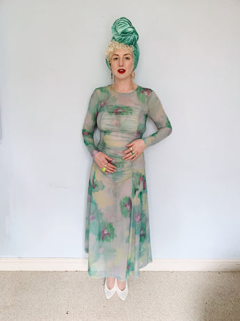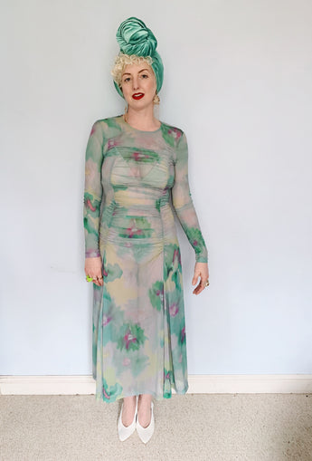 Zap Lolly Tie-dye ruched mesh sheer Dress