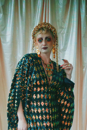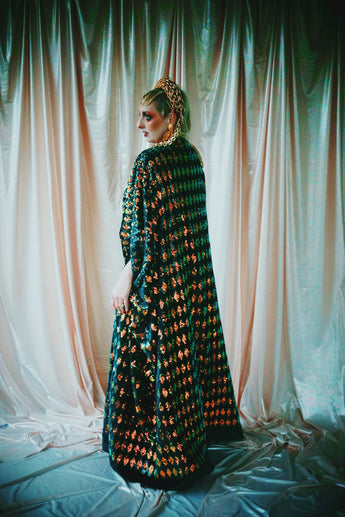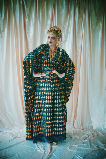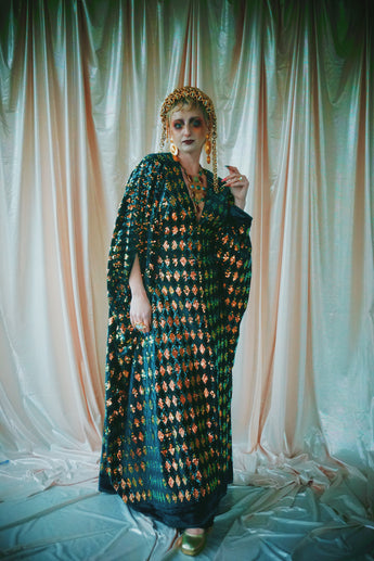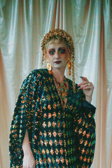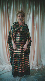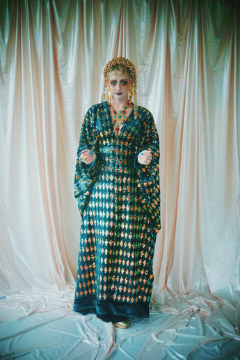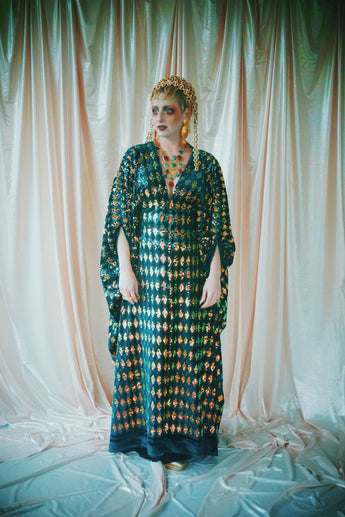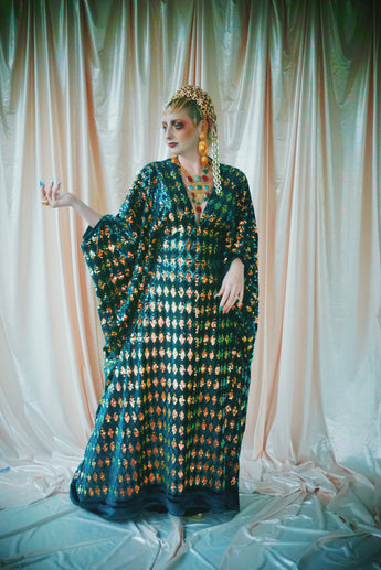 No.28 iridescent dynasty -V-neck sequin and velvet kaftan Gown