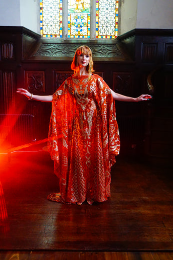 Our kaftan dresses are uniquely fitted with hidden velvet ribbons on the inside meaning YOU decide how you'd like to wear them. Choose from -