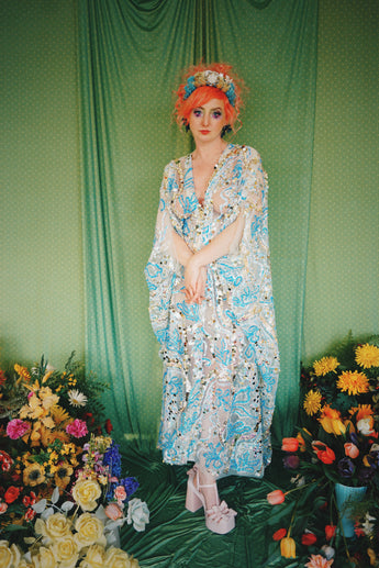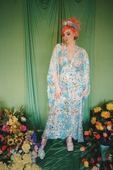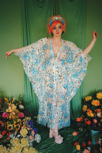 Jasmine - Dripping Golds and Blues Sequin Kaftan Gown