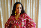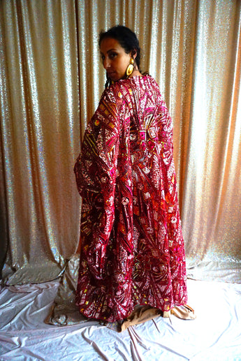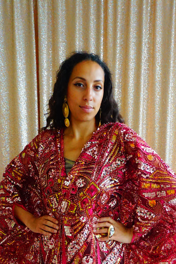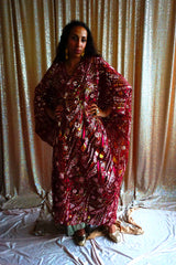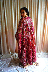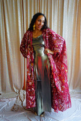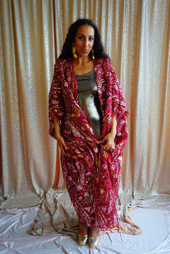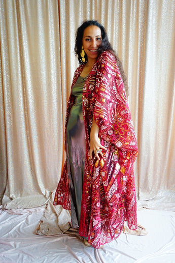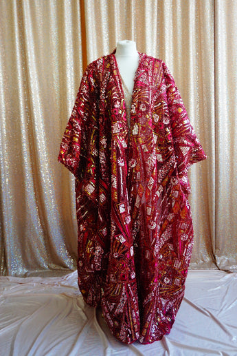 •F• Label Deep Red iridescent Heavily sequinned and Embroidered Kimono Robe
