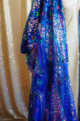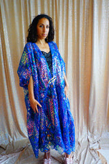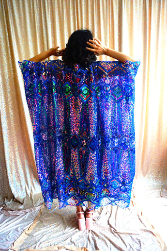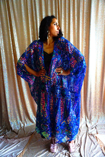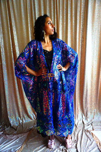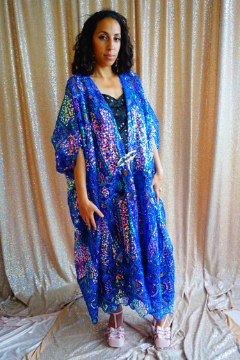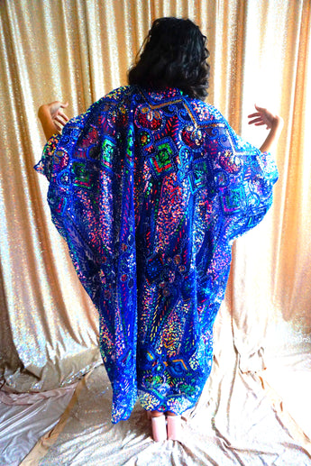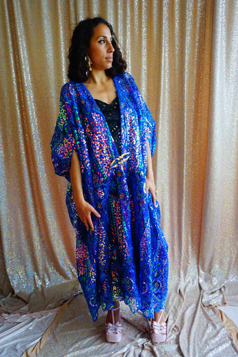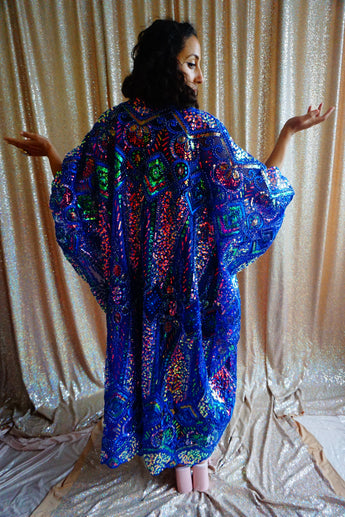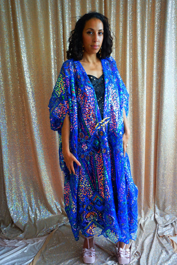 •F• Label Midnight Blue Iridescent Heavily sequinned and Embroidered Kimono Robe